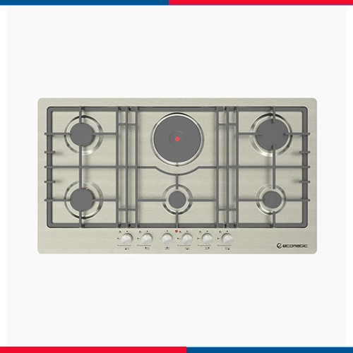 مسطح إيكوماتيك بلت إن غاز – 92 سم – 5 شعلات غاز + 1 شعلة كهربائية – ستانلس ستيل – موديل – S963XLE