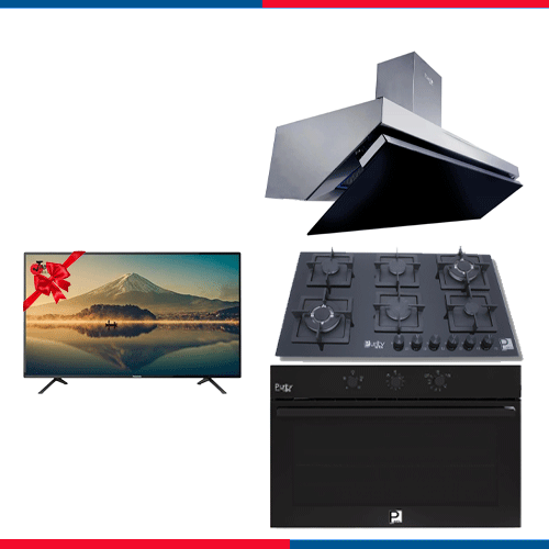 مجموعة من بيورتى تتكون من مسطح غاز 90 سم 6 شعلات HPT916G + وفرن غاز ديجيتال مع شواية غاز OPT903GG + وشفاط ديكوري GOLDEN Softo