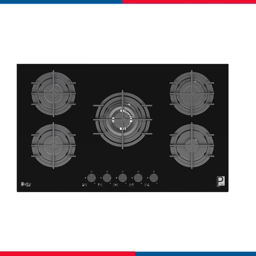 بيورتي مسطح غاز بلت ان 5 شعلة 90 سم حوامل زهر زجاجى أسود HPT911G