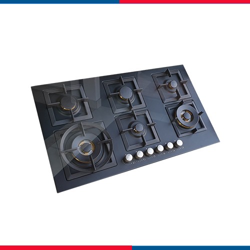 مسطح غاز كتشن لاين 90 سم – 6 عيون غاز – اسود – شبك زهر – اشعال ذاتي + أمان - موديل - J6020BK