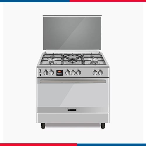 بوتاجاز غاز إيكوماتيك 5 شعلات 90 سم – فرن غاز 120 لتر – ستانلس ستيل ديجيتال – موديل – FS9304MDC