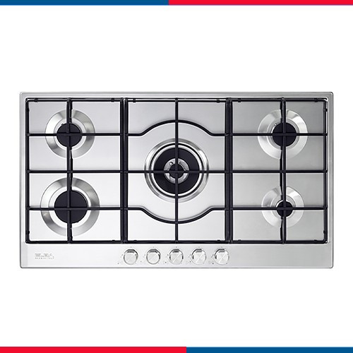 مسطح غاز إلبا، 90 سم، مصنوع من الفولاذ المقاوم للصدأ، 5 شعلات، تحكم أمامي، أمان كامل، إشعال ذاتي - ELIO95-545L