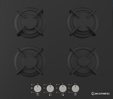 Ecomatic Built-in Gas Hob – 60 cm – 4 Burners – Black Crystal – Model – S607RBC