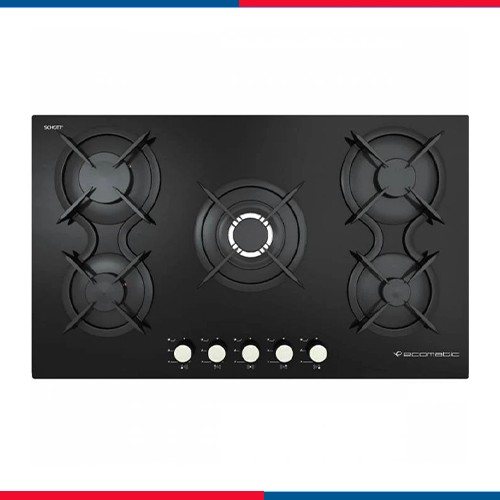 مسطح غاز إيكوماتيك بلت إن – 90 سم – 5 شعلات كريستال أسود بزجاج SCHOTT ألماني – موديل S917DC