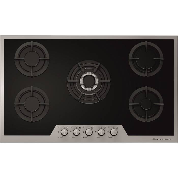مسطح غاز إيكوماتيك بلت إن – 90 سم – 5 شعلة – كريستال أسود بفريم ستانلس – موديل – S907IGC