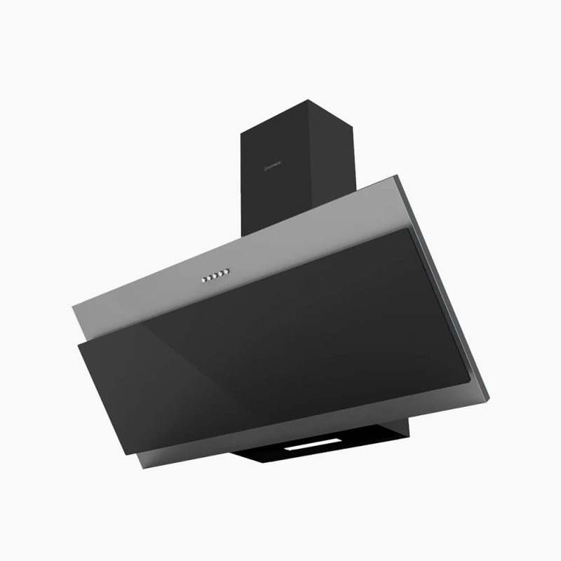 Ecomatic 90cm Decorative Slanted Kitchen Extractor Hood, Crystal Black x Stainless Steel – 650 m³/h Extraction Power – H9106EBX